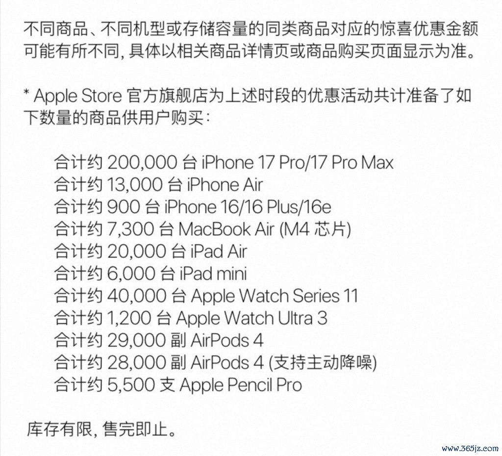 不过,苹果这次促销并不是敞开库存,而是有一定销量限制,售完即止。公告显示,这次促销的iPhone Air只有1.3万台。