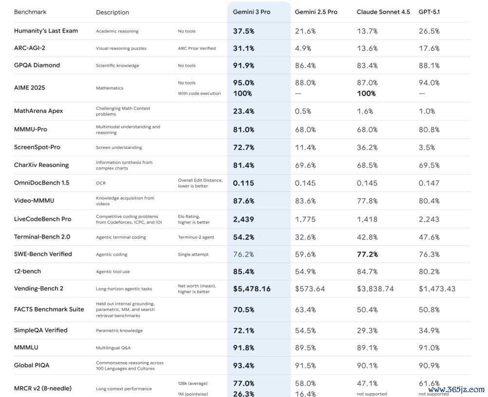 Gemini 3 Pro全方位超越GPT-5.1